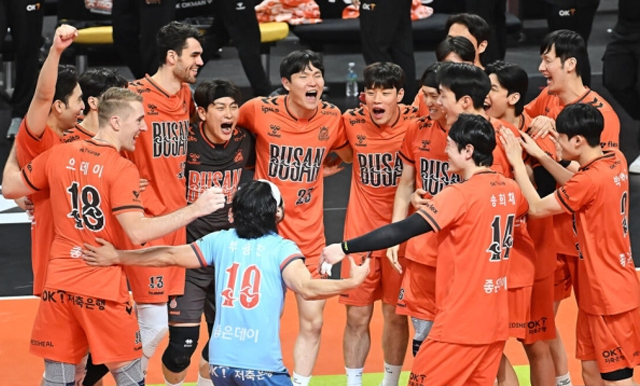 ‘자이언트 킬링’으로는 부족했다. ‘홈 깡패’들이 제대로 도파민을 터뜨렸다. OK저축은행이 홈 만원관중 앞에서 대역전극을 완성했다. OK저축은행은 17일 부산 강서체육관에서 열린 도드람 2025-2026 V리그 남자