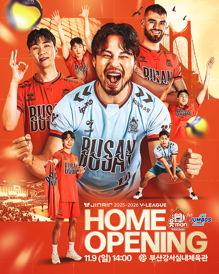 OK저축은행 읏맨 프로배구단(구단주 최윤, 이하 OK 읏맨 배구단)은 오는 11월 9일 부산 강서실내체육관에서 2025-2026 진에어 V-리그 홈 개막전을 개최한다. 부산으로 연고지 이전한 후 치르는 첫 번째 홈 경기로, ‘부산 OK’로서의 첫 출발을 알리는 상징적인 무대가 될 전망이다.