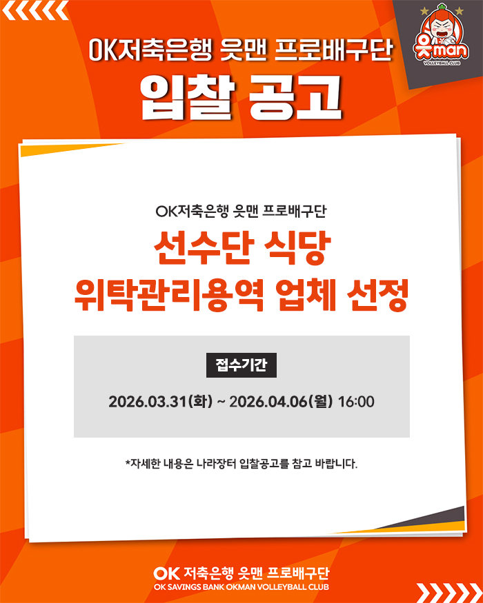 OK저축은행 읏맨 프로배구단 선수단 식당 위탁관리용역 입찰 공고
